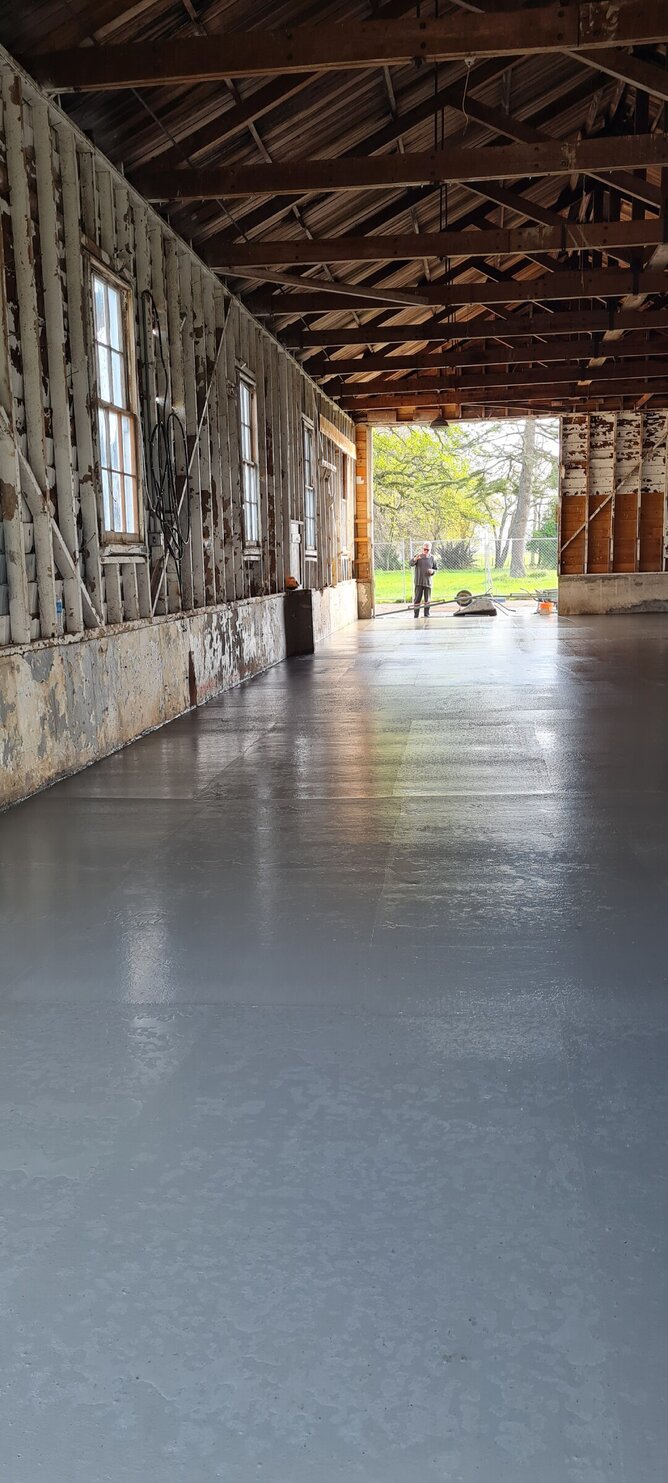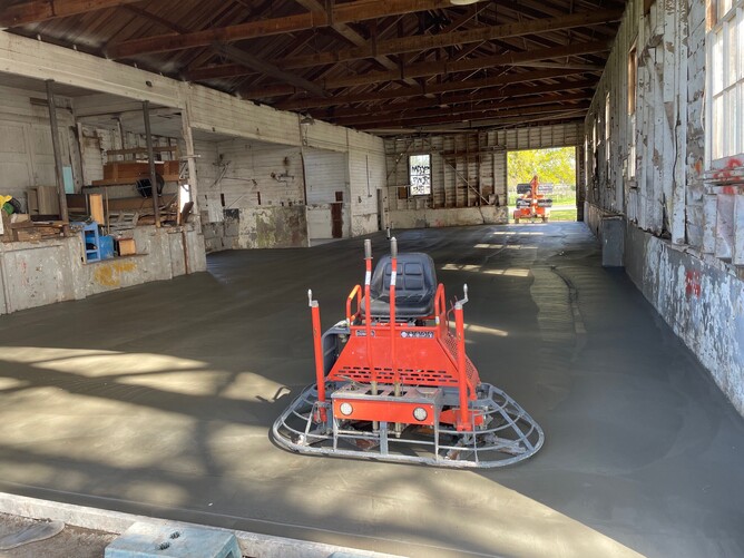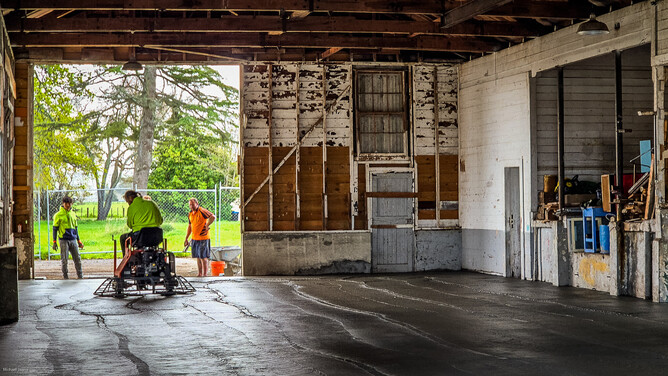 We have had a new concrete floor laid on top of the old floor by GDK Contracting. Work on the outside walls has been started to cover and fix rotting boards. The inside walls have been relined and are about to be painted. The new kitchen area inside the shed has been framed up. New wiring has been added.