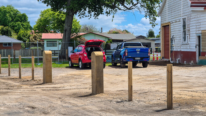 Passers-by will see that the posts for a perimeter fence on Carlyle and Lamb streets are in, fence and gates coming in the next few days.