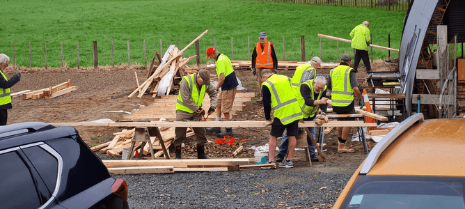 About half the crew cleaned up the timber store in the half round barn and that is looking considerably tidier than it was and there is now room for the items that Carters have donated to us. The other half dismantled and de-nailed a pile of packing crates that had been donated to us with a good percentage of the timber from those crates being recycled into our timber store for later use on projects.