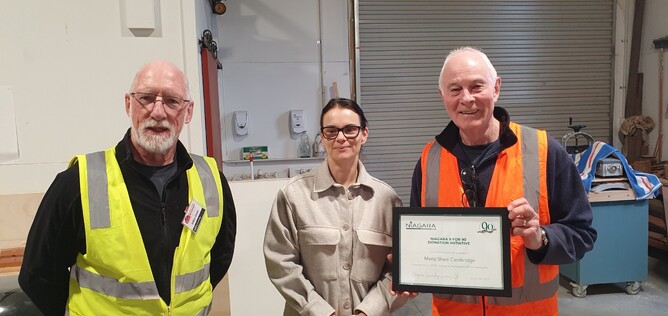 The MenzShed was delighted to receive a Donation of $5,000 from Niagra Sawmilling as part of their 9 for 90 initiative.